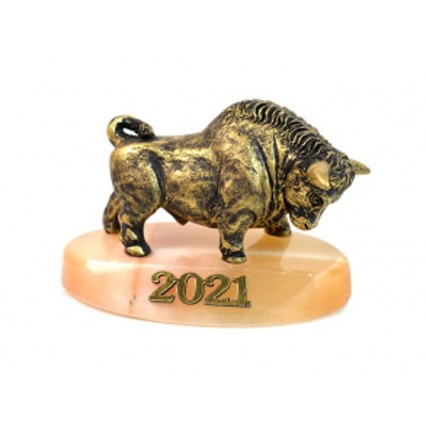 Композиция на подставке из селенита "Бык малый" 64*37*46мм
