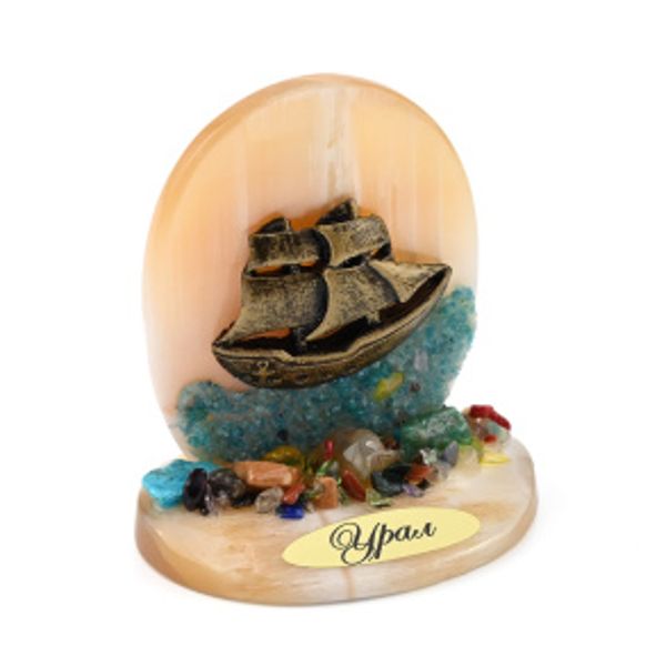 Композиция из селенита и самоцветов "Кораблик " 70*45*80мм.