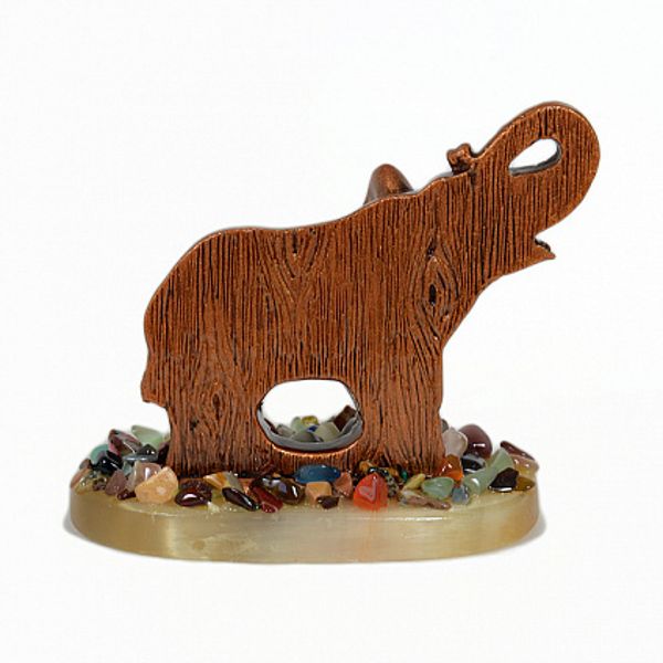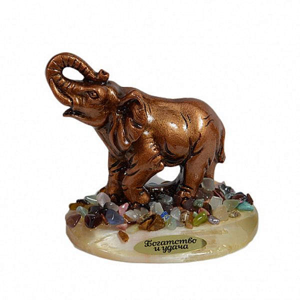 Композиция из селенита, литьевой смолы и самоцветов "слон" 100х60х90мм, 205г