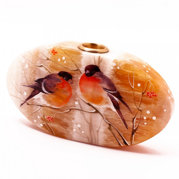 Ваза из селенита горизонтальная "снегири"