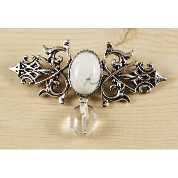 Брошь из каулита (имит. кахолонга) "вензель", основа 70х2.4мм, овал 18х13мм, подвеска горный хрусталь