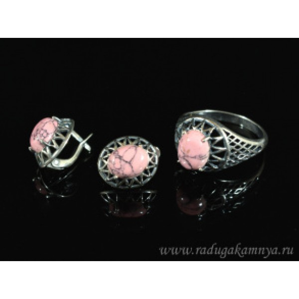 Кольцо и серьги с кахолонгом (имитация), цвет розовый