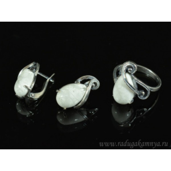 Кольцо и серьги с кахолонгом