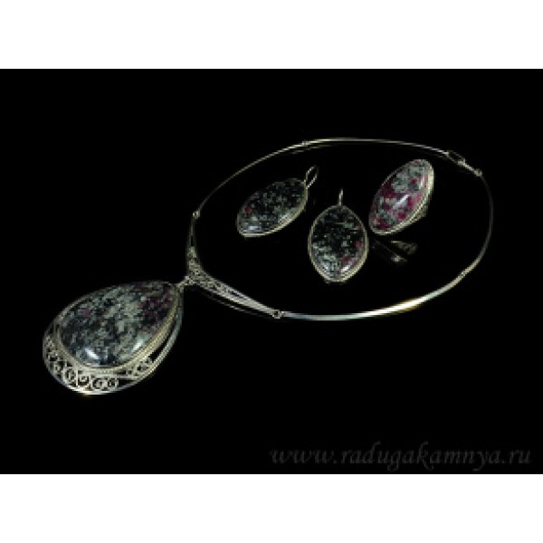 Кольцо и серьги из кахалонга и эвдиалита "Маски", ..