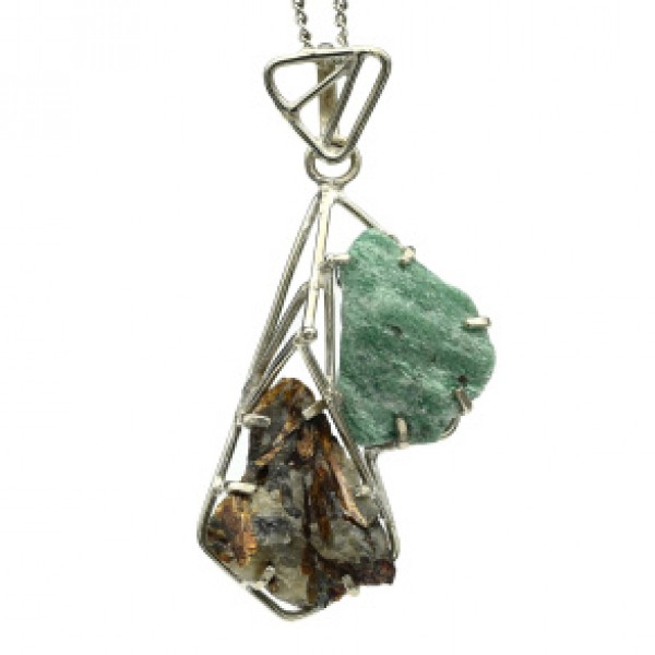Кулон с фукситом и астрофиллитом 23*44мм.