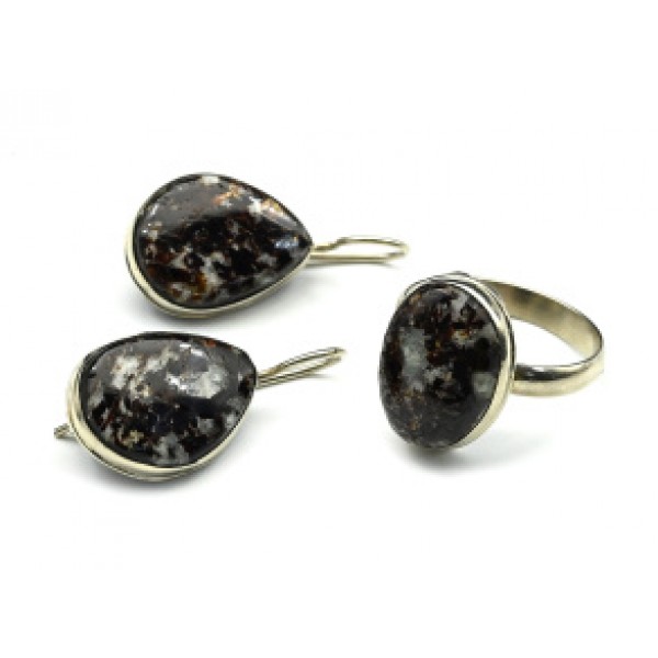 Кольцо и серьги из астрофиллита, размер-17,5