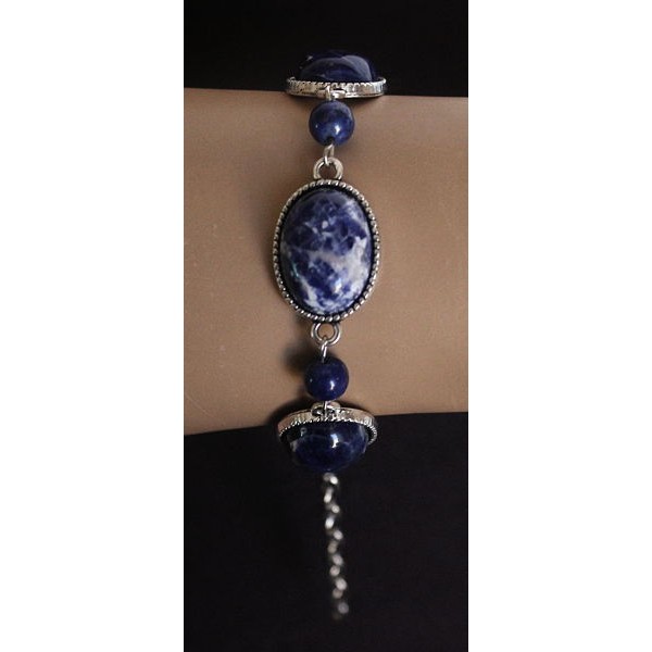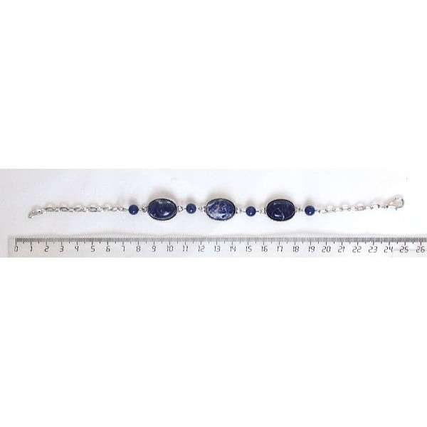 Браслет из содалита, овал 18х13мм+шарик 6мм, на цепочке