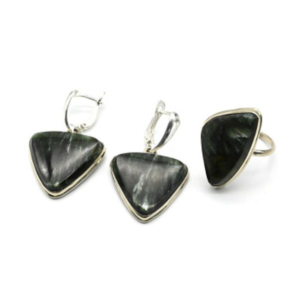 Кольцо и серьги серафинит
