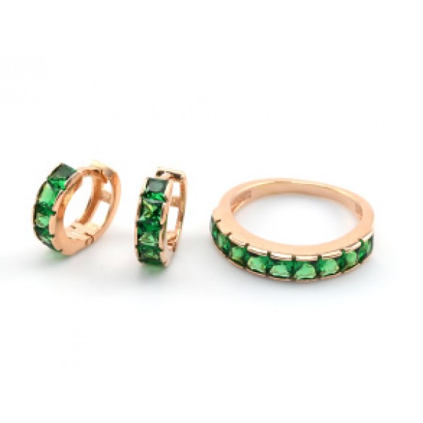 Кольцо и серьги с925 позолота и фианитами 4*12мм , 4,4гр (иск.)