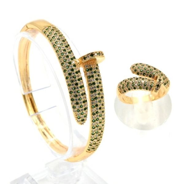Браслет гвоздь с фианитами цвет зеленый, 16см (иск.)