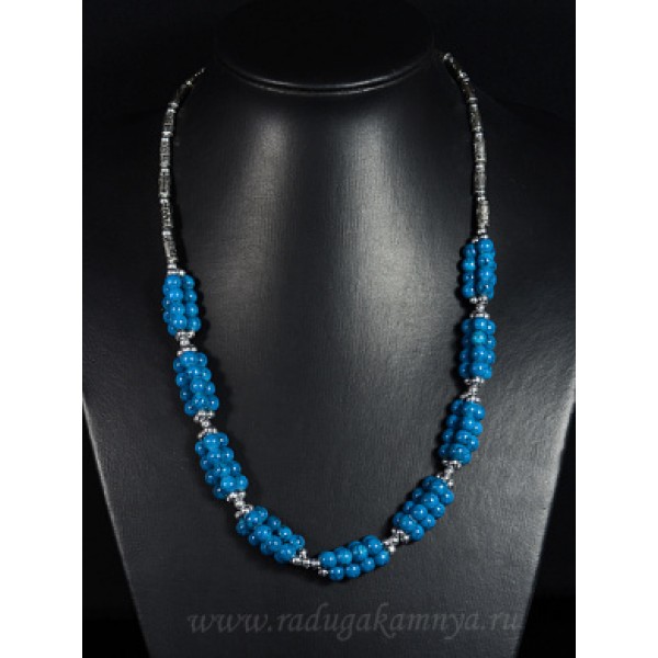 Браслет из бирюзы иск. на струнке, шарик 16мм, цве..