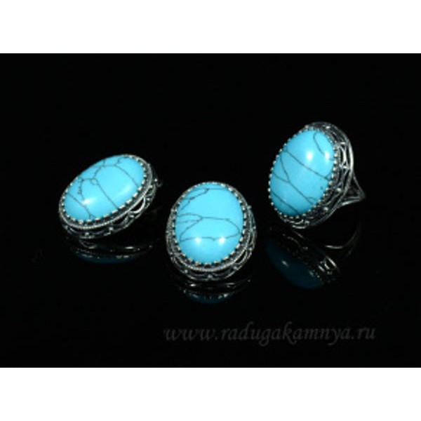 Кольцо с бирюзой (иск.), овал 25х18мм, безразмерно..