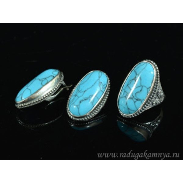 Кольцо с бирюзой (иск.), овал 25х18мм, безразмерно..