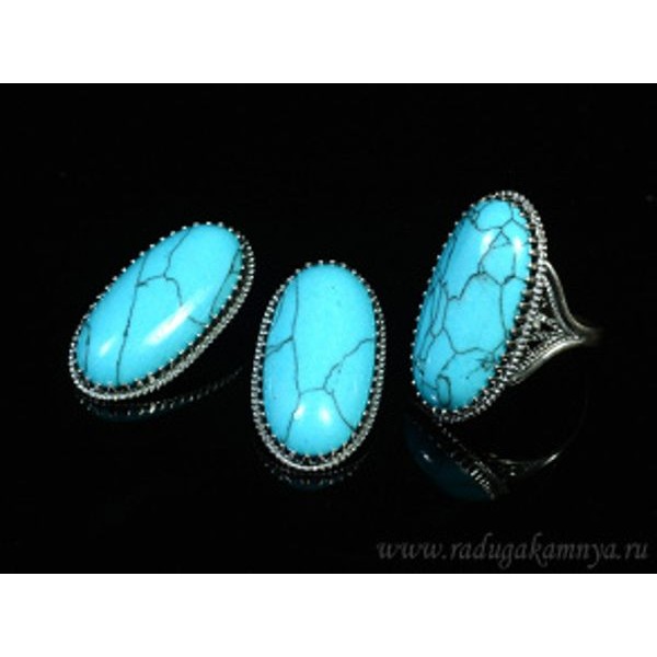 Кольцо с бирюзой (иск.), овал 25х18мм, безразмерно..