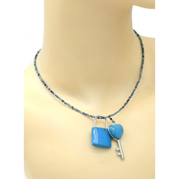Парный кулон Ключ - Замок 17*38мм, 20*32мм с бирюзой искусственной (иск.)