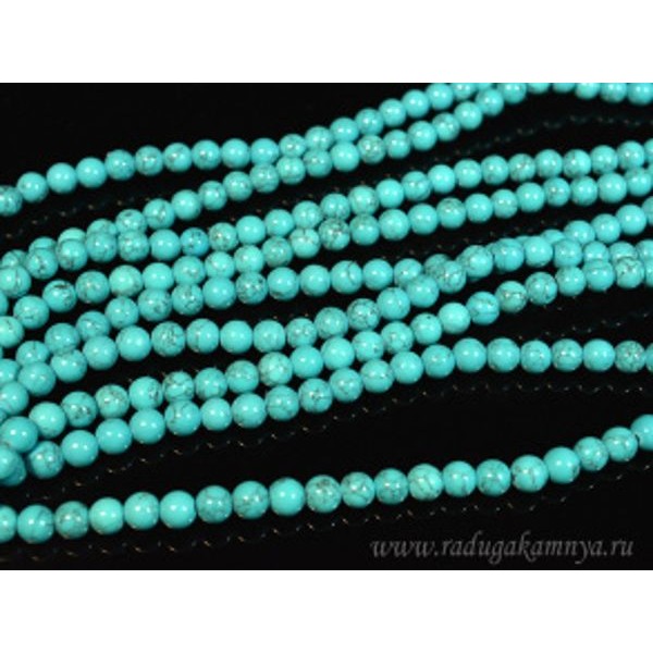 Бусины из туркенита (имитация бирюзы) шарик 6мм, 39см, 64 бусины