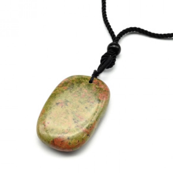 Кулон из унакита овал на шнурке 25*40мм, 62см