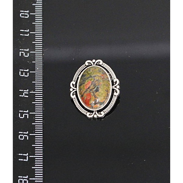 Кольцо с унакитом овал 18х13мм, литая оправа, родирование