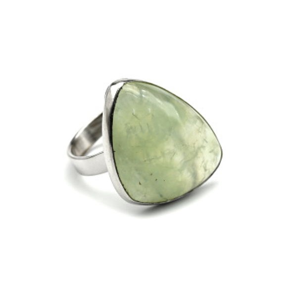 Кольцо из пренита литое широкое, цвет родиум, сетт..