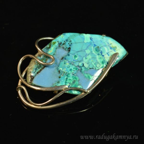 Брошь с хризоколлой 30*46мм.