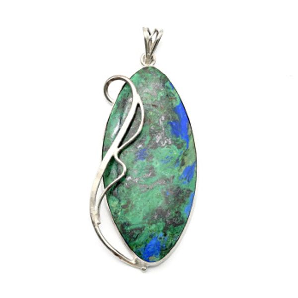 Брошь из хризоколлы в посеребрении 59*35мм.