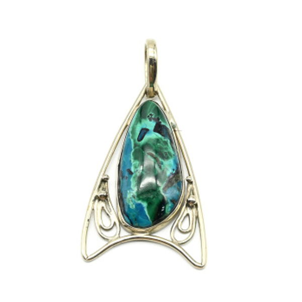 Брошь из хризоколлы в посеребрении 59*35мм.