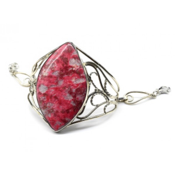 Брошь из цоизита "вензель", основа 70х2.4мм, овал 18х13мм, подвеска гранат