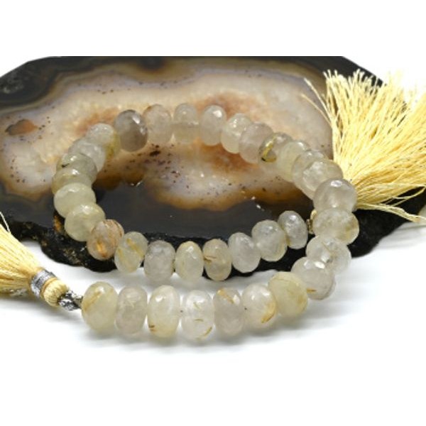 Бусины из рутилового кварца (волосатик золотой) рондель гр.9мм, 19,5см, 34 бусины, 22г