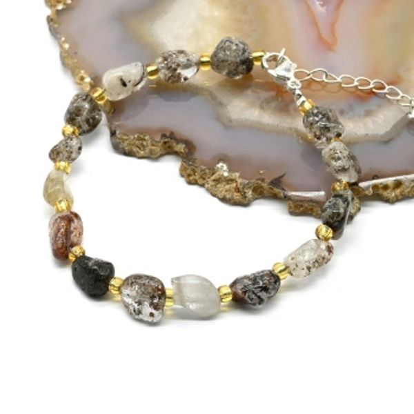 Браслет из рутилового кварца (волосатик) галтовка 6*5-7*8мм, 17см