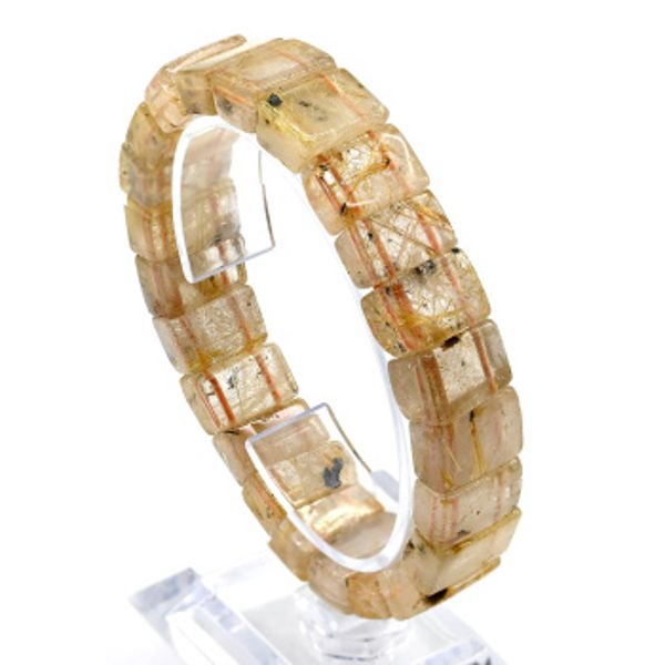 Браслет из Рутилового кварца (волосатик золотой) прямоугольник 14*10мм, 17см, 49,7г