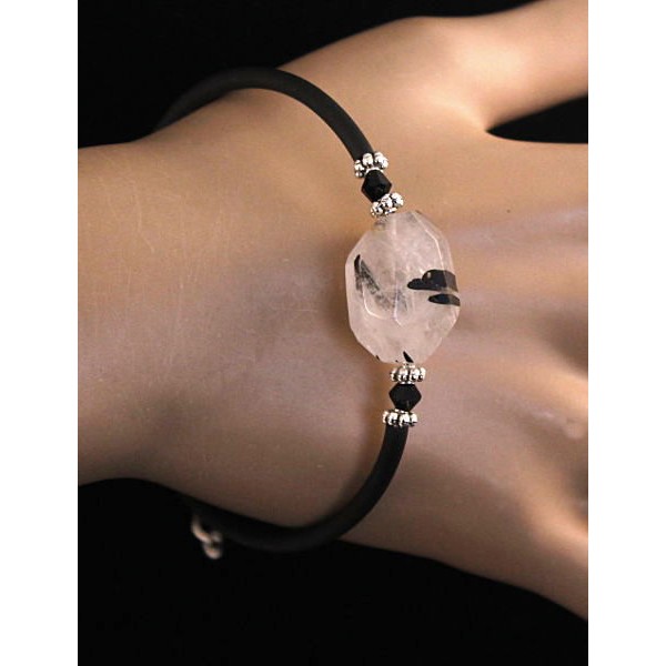 Браслет из кварца-волосатика на струнке, крупная огранка