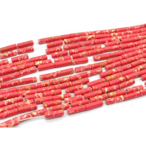 Бусины из варисцита (иск.) цилиндр 4*13мм, цвет малиновый, 39см, 30 бусин