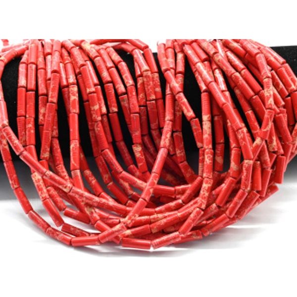 Бусины из варисцита цилиндр 4*13мм, цвет красный, 38см, 28 бусин (иск.)