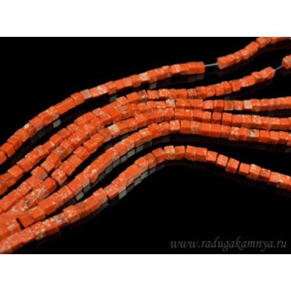 Бусины из варисцита (иск.) кубик 4мм, цвет оранжевый, 39,5см, 92 бусины