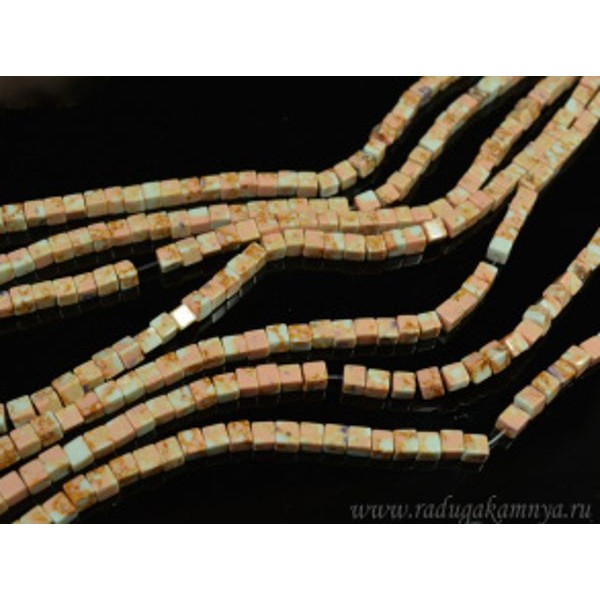 Бусины из варисцита (иск.) кубик 4мм, цвет персиковый, 39см, 96 бусин