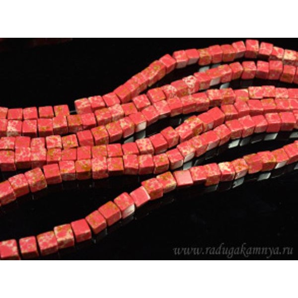 Бусины из варисцита (иск.) кубик 6мм, цвет малиновый, 40см, 65 бусин