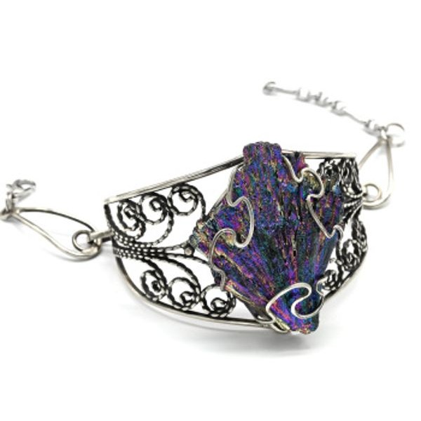 Брошь из кианита и ткани "цветок" с ювелирной сетк..
