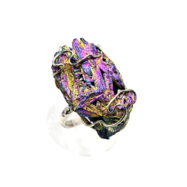 Кольцо с кианитом (кабошон-мозаика), овал 25х18мм, безразмерное (литая основа)