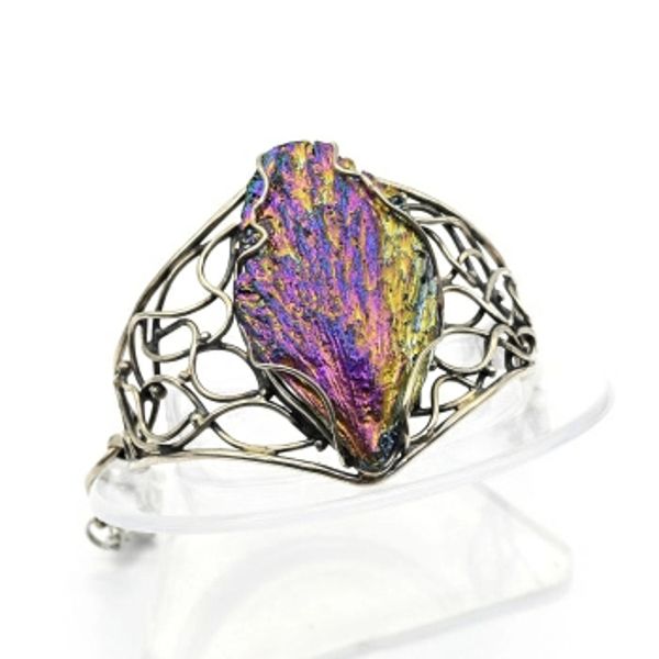 Брошь из кианита и ткани "цветок" с ювелирной сеткой