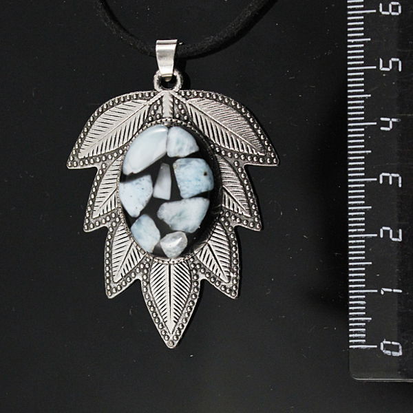 Кулон из ларимара (кабошон-мозаика) "лист", цвет ант. серебро, овал 25х18мм