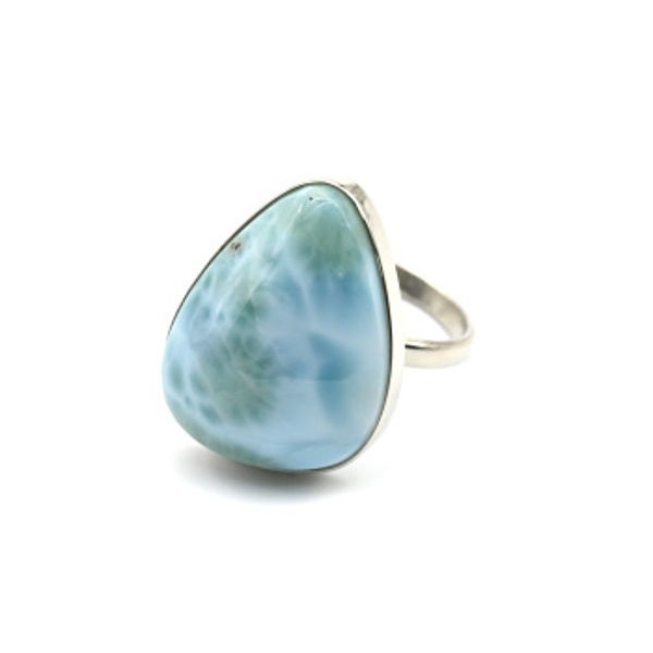 Кольцо с ларимара (кабошон-мозаика), овал 18x13, литая оправа, безразмерное