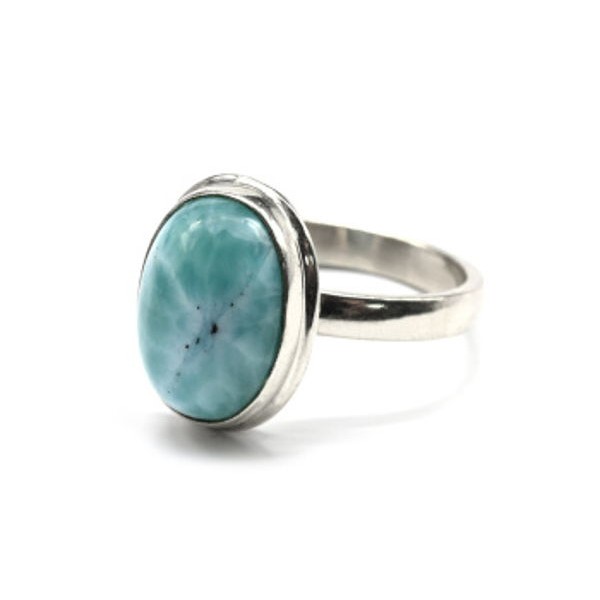 Кольцо с ларимара (кабошон-мозаика), овал 18x13, литая оправа, безразмерное