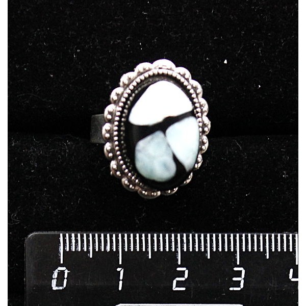 Кольцо из ларимара (кабошон-мозаика) овал, 18х13мм
