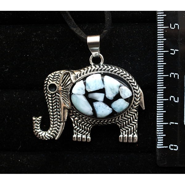 Кулон из ларимара (кабошон-мозаика), овал 25х18мм, "слон"