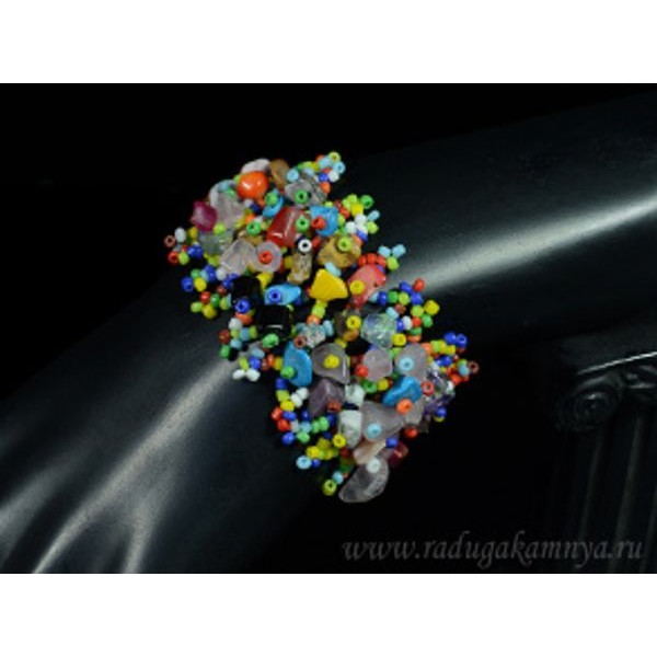 Браслет плетеный из бисера, с крошкой из самоцветов, 18см.