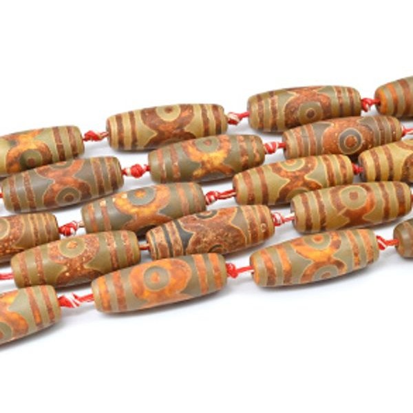 Бусины Дзи "Три глаза" из агата матового бочонок 14*39мм, 38см, 8 бусин