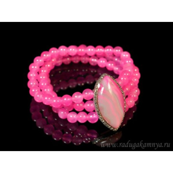 Браслет шарик 6мм в 3 нити из агата тонированного цвет фуксия