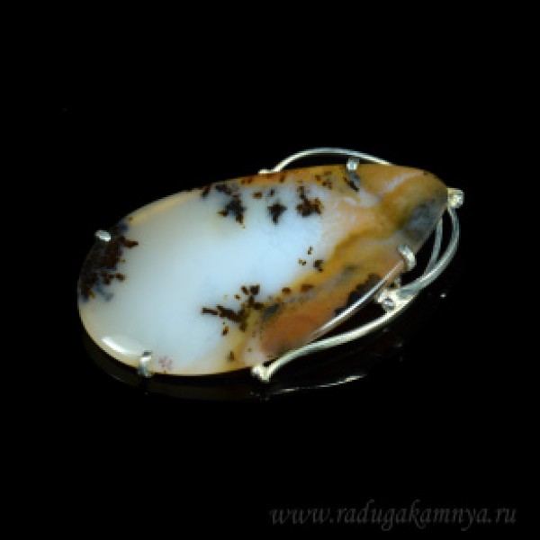 • Брошь из агата мохового в посеребрении 57*33мм.
