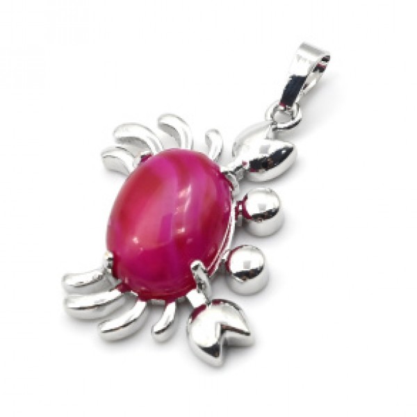Кулон с агатом тонированным "Краб" 22*34мм в металле цвет фуксия