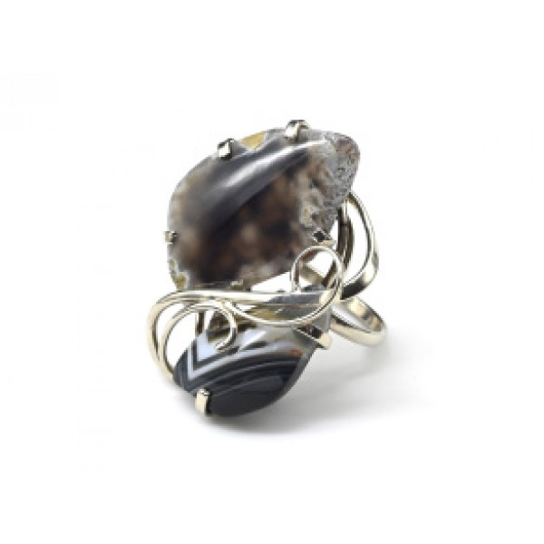 • Кольцо с агатом 28*38мм.